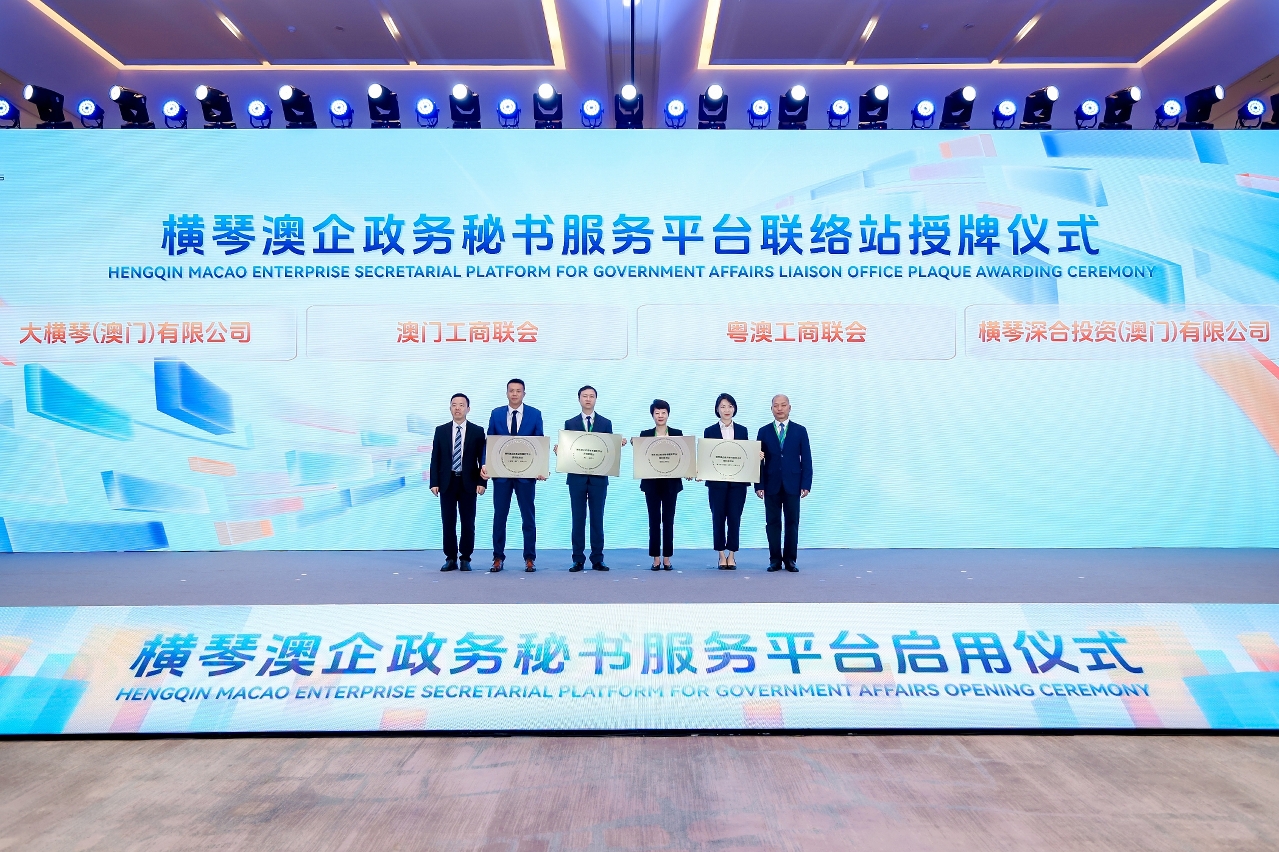 隨後,橫琴澳企政務秘書服務平台合作協議正式簽署,並為澳門工商聯會、粵澳工商聯會、橫琴深合投資(澳門)有限公司、大橫琴(澳門)有限公司四家平台聯絡站授牌,首批政務秘書團隊同步亮相。
