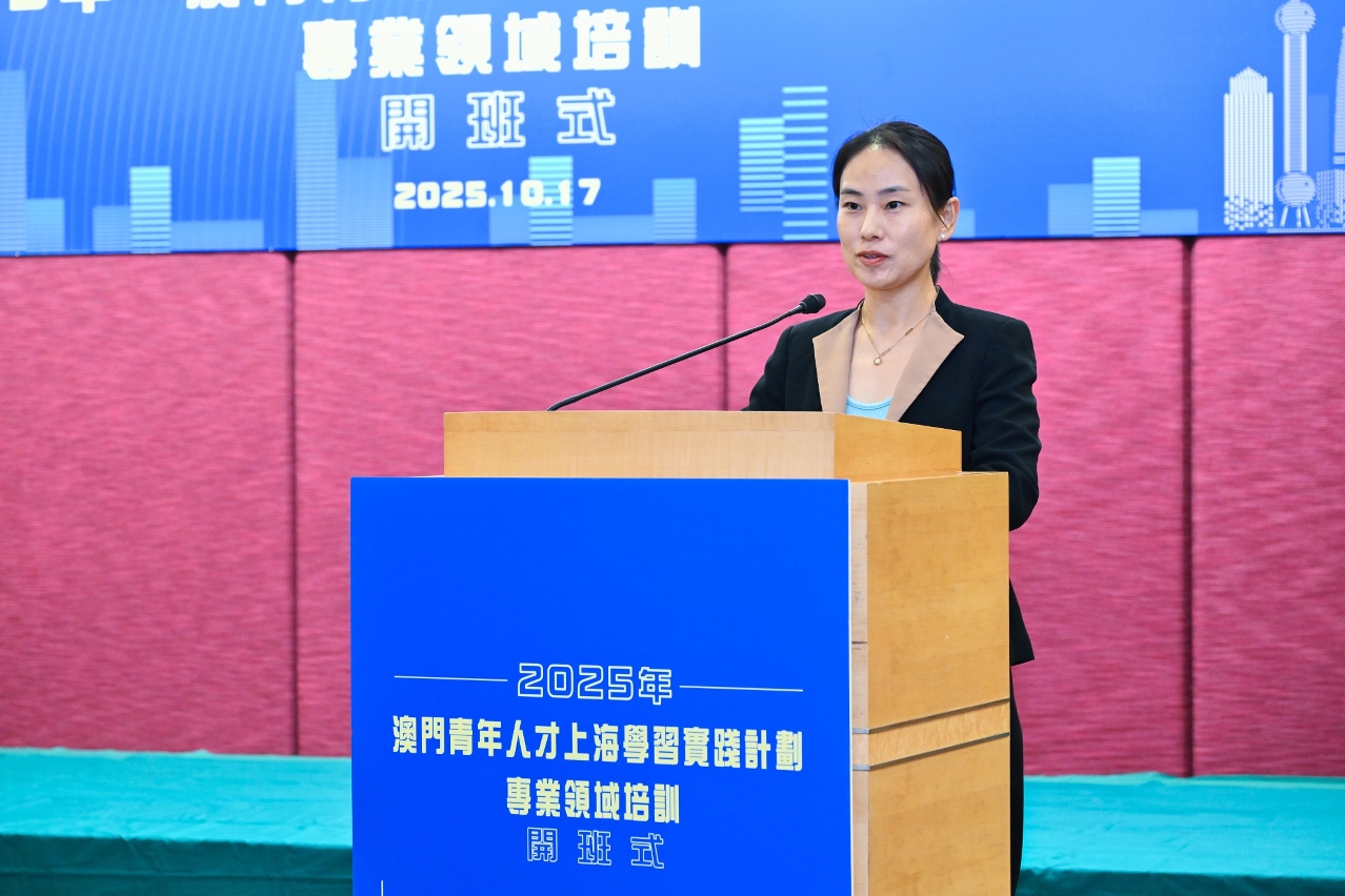 由全國政協港澳台僑委員會、上海市政協、澳區全國政協委員、中央人民政府駐澳聯絡辦公室、澳門基金會主辦的2025年“澳門青年人才上海學習實踐計劃”專業領域培訓已於10月17日下午3時於澳門中華總商會四樓何賢先生紀念堂舉行開班儀式。20名來自本澳社會各界的學員將於10月19日至12月18日赴上海區級政府相關部門或企事業單位進行兩個月實踐活動,期間輔以理論課程及參觀考察增進知識。