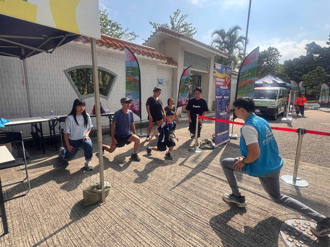 活動期間,有專業人員現場帶領居家運動教學及伸展減壓操,並分享實用營養建議,推動居民關注身心健康。參與民眾絡繹不絕,包括銀髮族、青年及親子家庭共同投入。在居家運動教學區,不少居民在教練逐步指導下,學習簡單易做的伸展動作,氣氛輕鬆融洽。