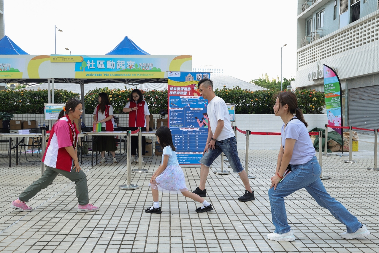 活動以「運動減壓、運動營養」為主題,連續兩週在全澳各社區展開,現場不僅設置專題攤位遊戲,更提供多項趣味運動體驗,包括羽毛球、乒乓球、足球、籃球、排球與跳繩等,吸引不同年齡層居民積極參與,場面熱鬧。