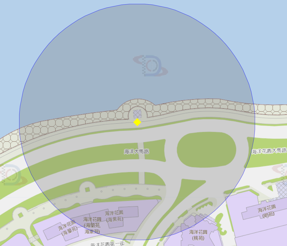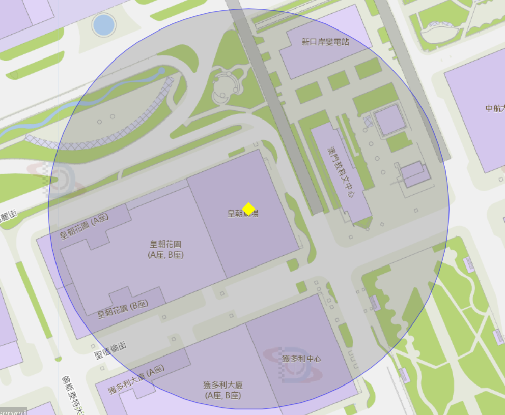氹仔海洋花園杏花苑附近風險區域100米半徑範圍