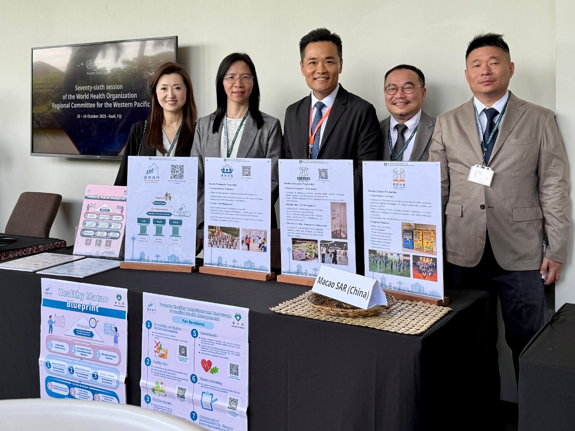 澳門特別行政區政府衛生局羅奕龍局長率團赴斐濟楠迪,出席第76屆世界衛生組織西太平洋區域(下稱“世衛西太區”)委員會會議。會議期間,澳門特別行政區政府設置展位,向37個成員國家和地區的代表展示《健康澳門藍圖》(以下簡稱《藍圖》)的整體規劃,不僅強化澳門特別行政區在國際衛生事務中的影響力,更體現澳門特別行政區政府對接國家“健康中國”戰略的堅定決心。