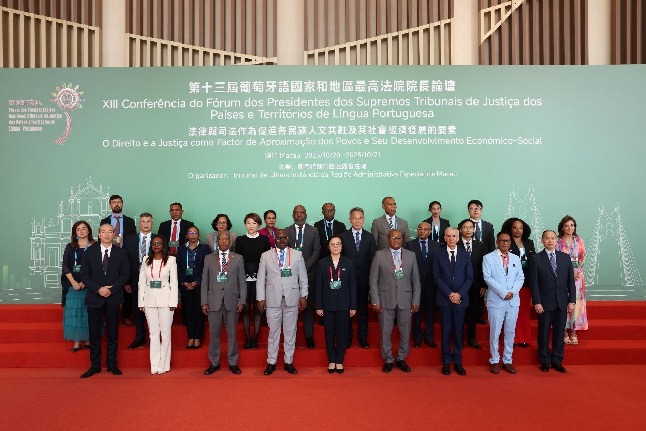 2025年10月20日至21日,由澳門特別行政區終審法院主辦的“第十三屆葡萄牙語國家和地區最高法院院長論壇”在澳門舉行。本次論壇的議題為「法律與司法作為促進各民族人文共融及其社會經濟發展的要素」。應澳門終審法院院長宋敏莉的邀請,安哥拉、佛得角、赤道幾內亞、莫桑比克、葡萄牙、聖多美和普林西比及東帝汶等七個葡萄牙語國家的最高司法法院院長或代表來澳出席會議,巴西最高法院院長則以錄播方式參與。