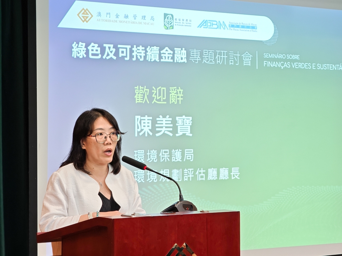 環保局環境規劃評估廳廳長陳美寶在致辭時表示,環保局自2009年成立至今,已制訂了逾60條有關環境保護方面的法律法規,涵蓋改善空氣質素、完善廢物管理及履行國際公約等不同範疇,並推出多項節能減排措施,包括推廣使用新能源車輛、推出綠色建築指引、推動更多企業實踐各種環保行為,以及引入更多環保節能技術等。根據國內外成功的實踐經驗,綠色金融有助於引導資源向綠色產業轉移,推動產業結構轉型。