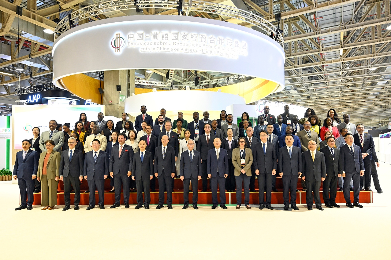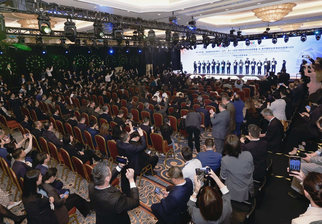 行政長官岑浩輝與一眾嘉賓主持“第二屆中國-葡語國家經貿博覽會(澳門)”、“第三十屆澳門國際貿易投資展覽會”和“澳門國際品牌連鎖加盟展2025”開幕儀式