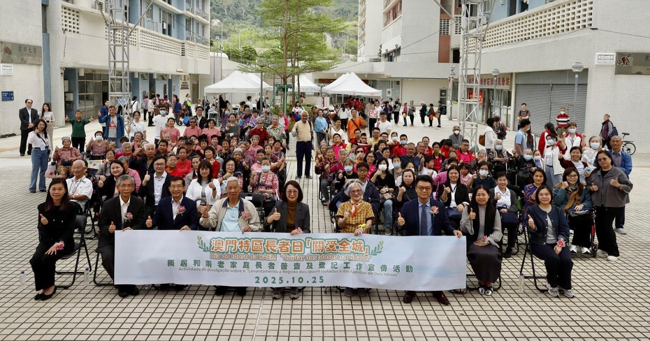 由社會工作局與澳門明愛合辦,澳門街坊會聯合總會、澳門工會聯合總會和澳門婦女聯合總會協辦的2025澳門特區長者日“關愛全城”―獨居和兩老家庭長者普查及登記工作宣傳活動,於10月25日下午在石排灣業興三街廣場順利舉行,活動內容包括“獨居和兩老家庭長者普查及登記工作”的啟動儀式、攤位遊戲和話劇表演等,共吸引約2,000人次參與。
