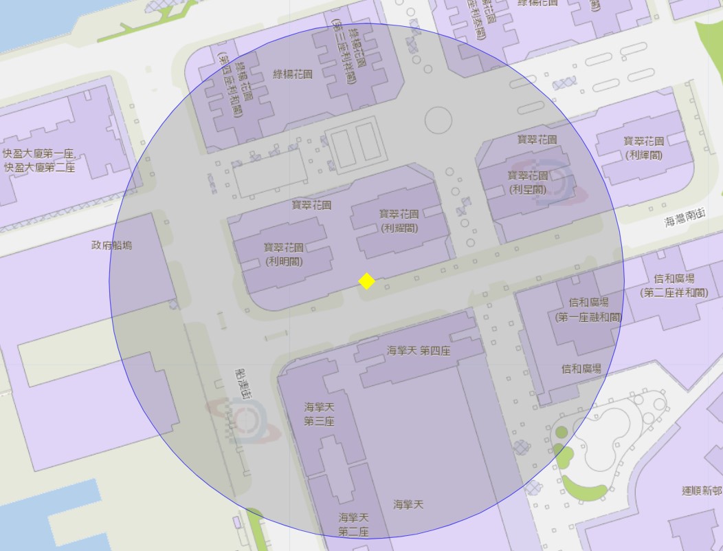 圖1. 海灣南街49號附近風險區域100米半徑範圍