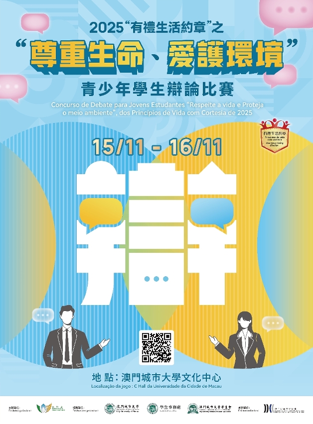 為推動年青人傳承中華傳統禮儀文化與奉行有禮生活,市政署將在十一月舉辦“2025‘有禮生活約章’之‘尊重生命、愛護環境’青少年學生辯論比賽”及“2025‘有禮生活約章’全澳青少年系列活動競技同樂日”活動,歡迎報名參加。