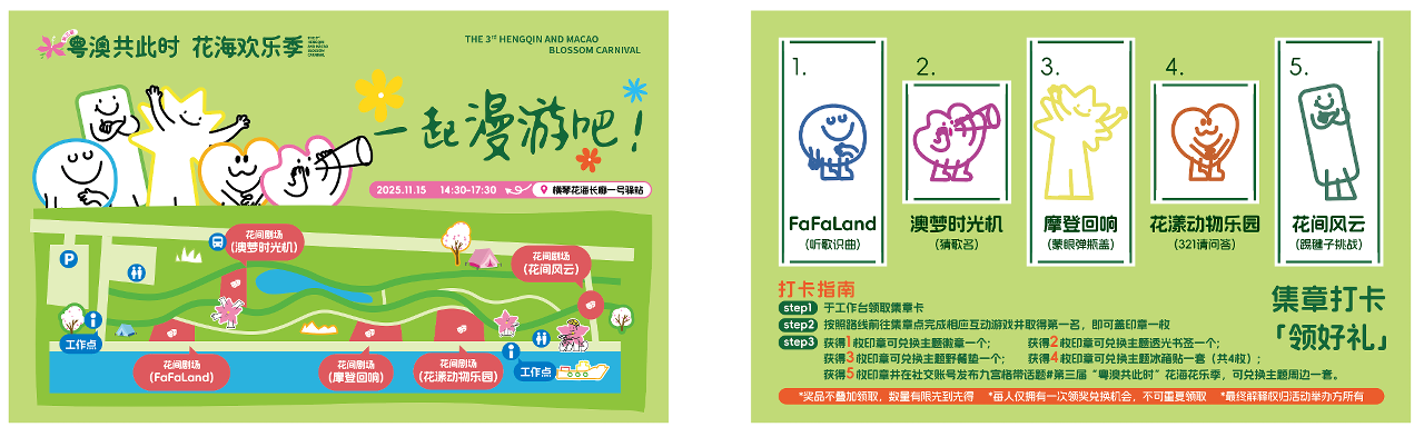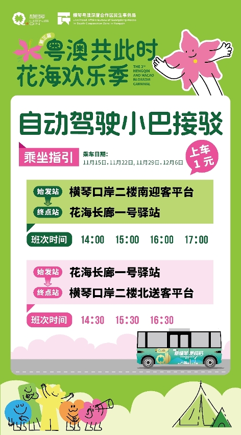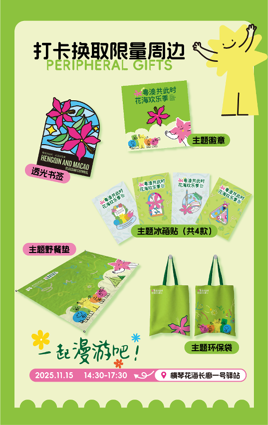 本屆花海盛會不僅精心策劃了豐富的主題活動,更在服務與體驗上全面升級,致力為每一位到場市民與遊客提供貼心周到的遊玩保障。活動現場特別引入了多樣化的餐飲服務,讓遊客在暢遊之餘盡享美味。為便利出行,特別開通了往返於橫琴口岸與花海長廊一號驛站的自動駕駛小巴接駁專線,實現琴澳兩地便捷交通銜接。此外,現場互動玩法精彩紛呈,福利送不停!遊客可以通過參與現場互動、關注官方賬號、分享活動盛況及每周打卡,即有機會贏取多重好禮。