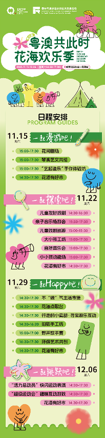 活動將於11月15日14:30在橫琴花海長廊一號驛站浪漫開幕。開幕首周活動“來花海·一起漫遊吧”,澳門藝術家黎小傑、盧紹儀將分別以裝置講述時光與城市的故事,以當代水墨融合中西筆觸,用新水墨語言描繪澳門的城市與人文之美。活動還邀請了澳門人樂隊隊長左文軒、橫琴龍鳴傳音融合樂隊等文藝團隊登台,6組表演團隊、33位演員帶來28場主題快閃與互動演出,讓遊客沉浸式感受藝文魅力。活動現場還設有“花海有好市”,集結30餘個粵澳特色美食、咖啡與文創品牌,為市民呈獻集美食與藝術於一體的生活市集。