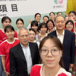 行政長官岑浩輝抵達綜藝館時,與前來觀看十五運會空手道賽事的學生們互動和自拍合影。