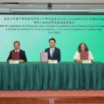 為積極配合國家“一帶一路”建設,進一步強化澳門“內聯外通”功能,教育及青年發展局持續推動葡語發展、培育高素質中葡雙語人才,促成高美士中葡中學與廣州市第六中學及葡萄牙Escola Secundária de Cacilhas-Tejo締結三地姐妹學校合作關係,為非高等教育階段的葡語教學與中葡雙語人才培養注入新動力。