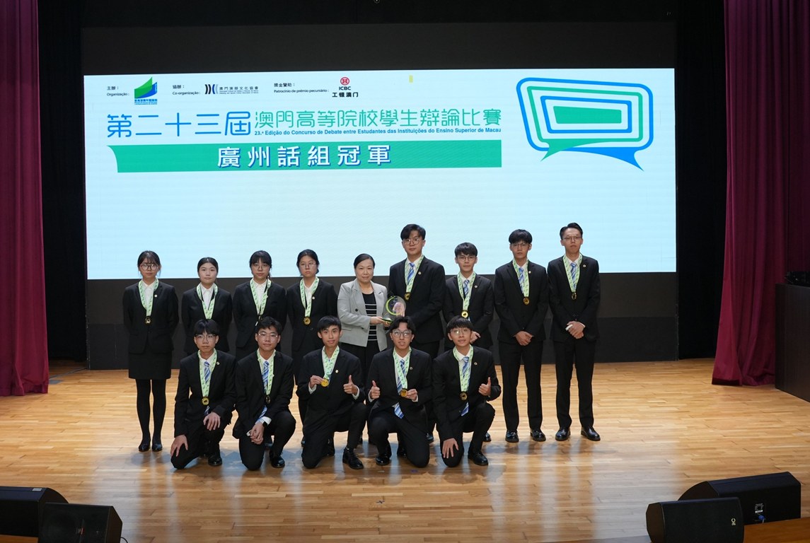 由教育及青年發展局主辦、澳門演辯文化協會協辦、中國工商銀行(澳門)股份有限公司獎金贊助的2025/2026學年“第二十三屆澳門高等院校學生辯論比賽”決賽已於2025年10月26日(星期日)假中葡職業技術學校順利舉行。