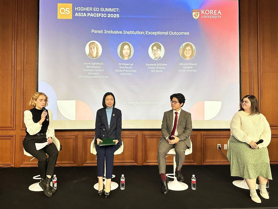 2025 QS亞太高等教育高峰會(QS Higher Ed Summit: Asia Pacific 2025)於韓國首爾舉行,峰會以“提升世代潛力:亞太地區的技能與合作” (Advancing Generational Potential: Skills and Partnerships in the Asia Pacific)為主題,匯聚全球超過三百名專家學者和一千五百名高等教育領袖參與,聚焦探討教育未來發展和跨領域合作等議題。澳門理工大學副校長李雁蓮應邀出席並在“高校多元文化共融發展論壇”發言,闡述澳理大在課程設置、學習支援與校企社共創方面的成功實踐。