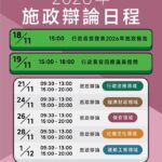 各領域施政方針的立法會辯論會議,日程分別是:11月21日辯論行政法務領域、24日辯論經濟財政領域、26日辯論保安領域、28日辯論社會文化領域,以及12月1日辯論運輸工務領域的施政方針。