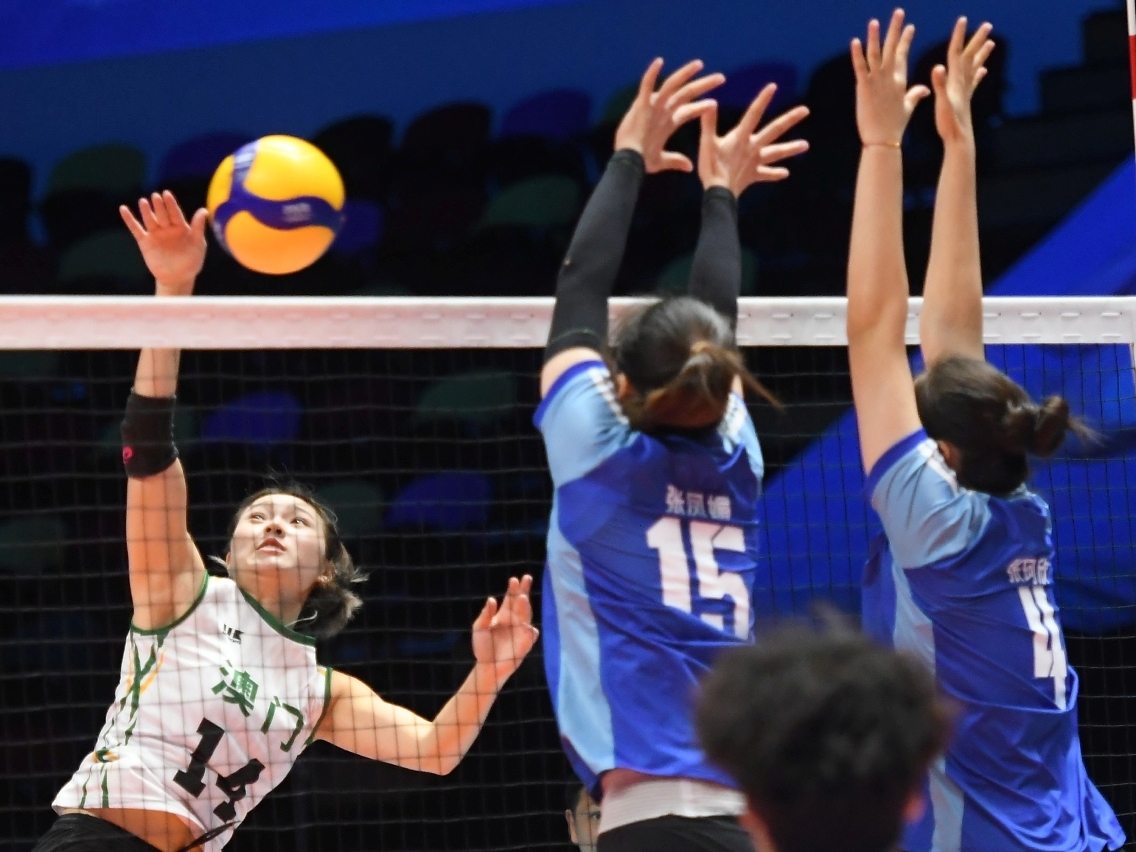 排球女子成年組,澳門隊在排名小組賽對廣東隊,結果以局數0比3告負。