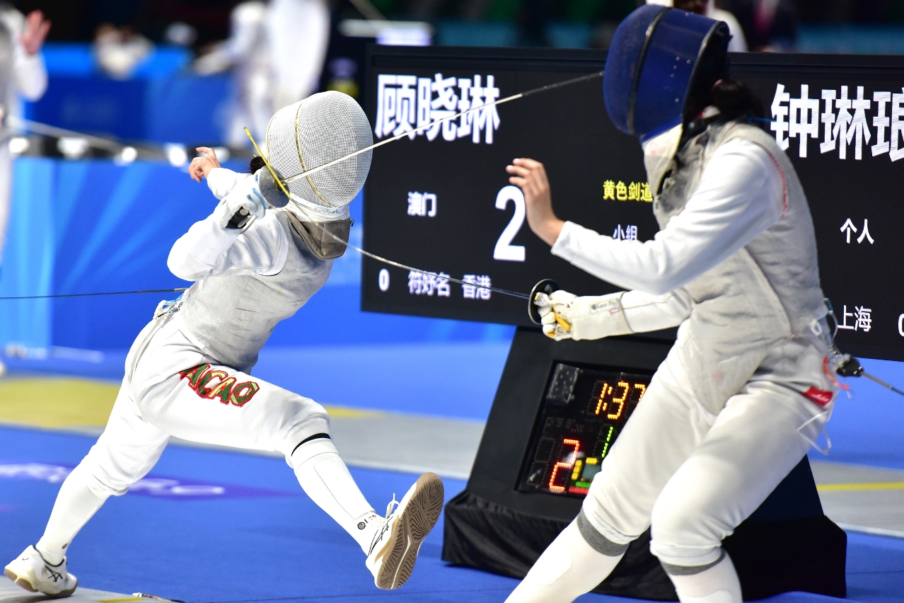 在香港賽區進行的劍擊賽事,女子花劍個人賽有顧曉琳(KU HIO LAM)成功闖過小組賽階段,取得3勝3負,先後擊敗香港選手、湖南及以個人名義參賽的選手,並以小組賽總排名第13位,取得晉級32強淘汰賽的資格,惜最後在首圈淘汰賽負重慶選手8比15,而止步於32強;另外兩名女子花劍選手,林芷薇(LAM CHI MEI)與易碧真(IEC PEK CHAN)經過小組賽階段後均未能晉級,總成績分別排第41位和第42位。此外,林承佑(LIN SENG IAO)出戰男子重劍,在小組賽錄得1勝5負,總成績排第36位,未能晉級。