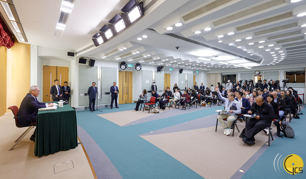 行政長官岑浩輝發表2026年施政報告後在政府總部會見傳媒,回答記者提問。