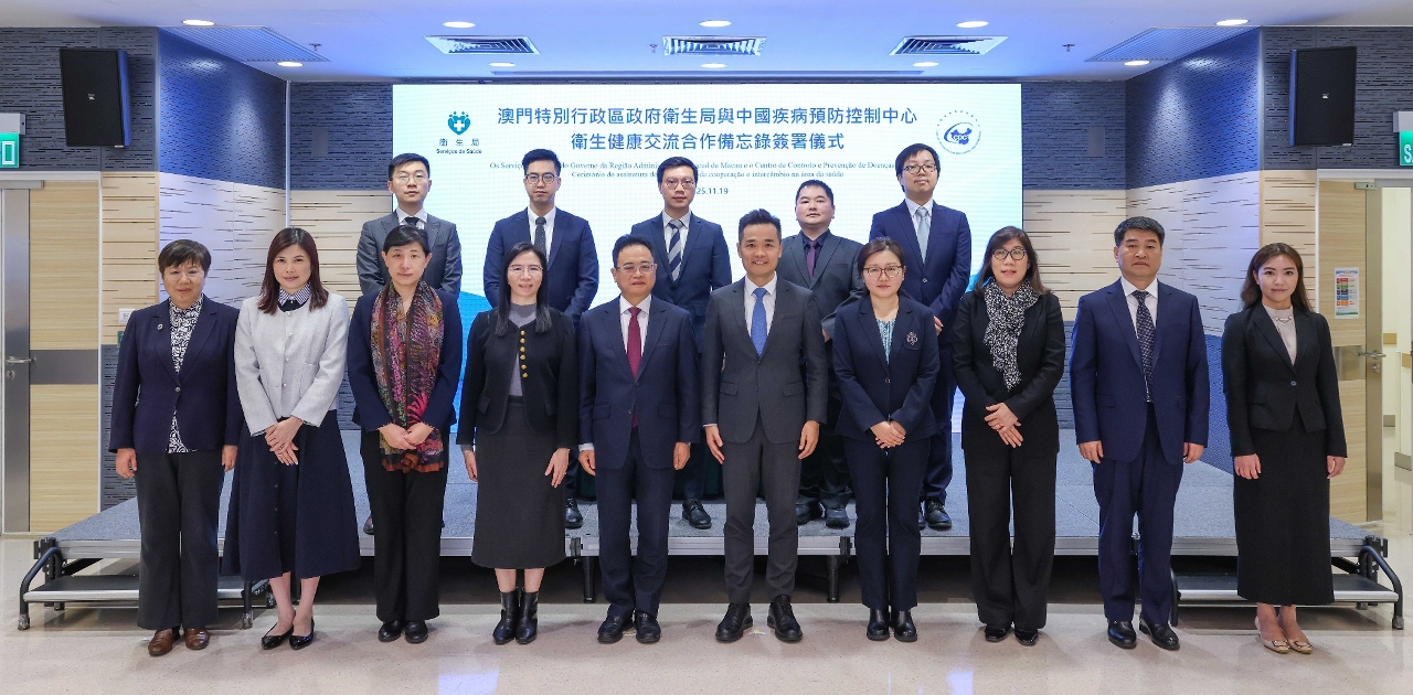 衛生局羅奕龍局長、疾病預防控制中心梁亦好主任及公共衛生化驗所呂綺玲主任等,昨(19)日與中國疾病預防控制中心王健偉主任率領的代表團舉行座談會,雙方簽署了《衛生健康交流合作備忘錄》,進一步加強在傳染病防控、慢性病綜合防控及公共衛生領域的合作。