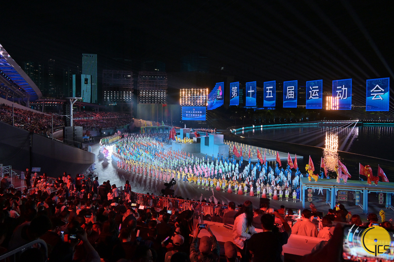 第十五屆全國運動會閉幕式在深圳寶安歡樂劇場舉行,全國政協主席王滬寧宣佈閉幕。行政長官岑浩輝在閉幕式上致辭。(新華社圖片)