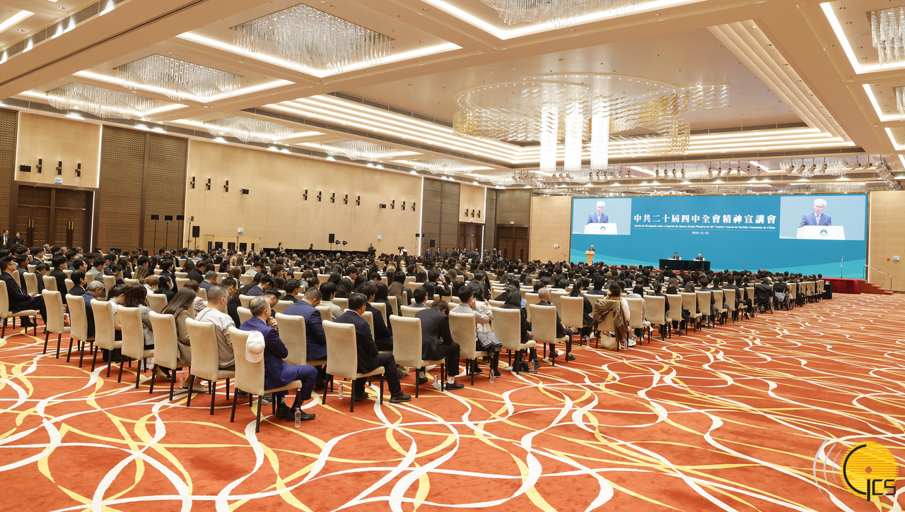 澳門特區政府今(22)日下午舉辦第二場“中共二十屆四中全會精神宣講會”,中央宣講團成員,中國科學院院長、黨組書記侯建國和中央宣講團成員,中央財經委員會辦公室副主任、中央農村工作領導小組辦公室副主任祝衛東,向本澳社會各界人士代表宣講全會精神。
