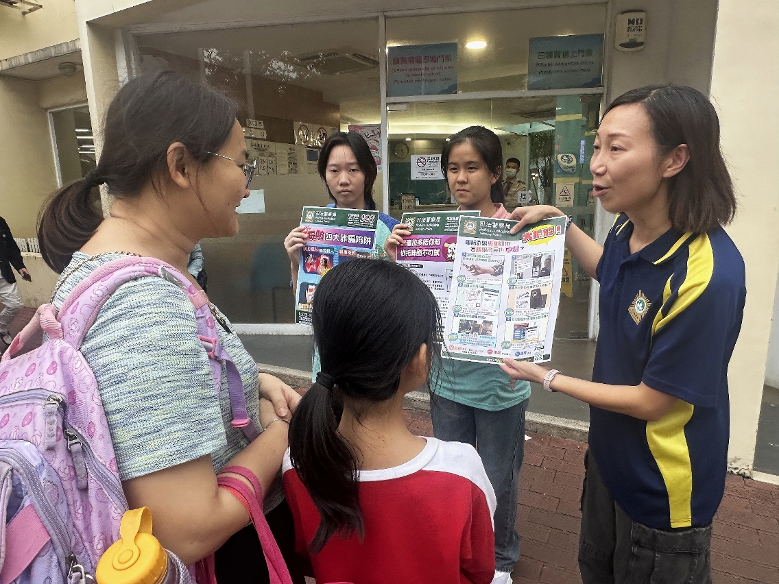 11月10日至21日期間,司警局關注少年科人員聯同“社區安全青年領袖計劃”及“滅罪小先鋒種子計劃”學員,於放學後前往體育局轄下十多處運動場所,包括體育館、運動場、游泳館、體育綜合體及其周邊區域展開防罪宣教活動。期間,司警局人員主動與青少年交流,了解他們對常見犯罪手法的認知,並講解青少年常見犯罪類型及防範措施,進一步強化其防罪意識與應變能力。同時,司警局亦提供防罪宣傳海報電子檔,供相關場所於顯示屏循環播放,以助降低市民受騙風險。是次活動反應良好,共接觸超過900名青少年,司警局人員亦鼓勵他們將所學防罪資訊分享給家人、朋友及同學,擴大宣導效果。