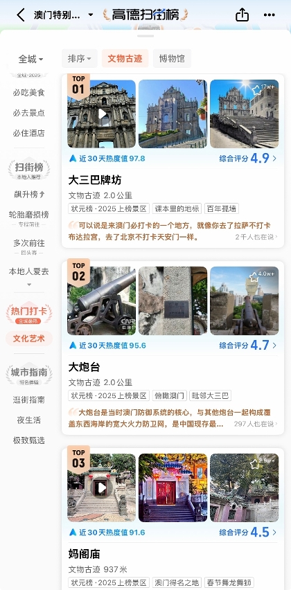 “一鍵智慧遊澳門”還推出澳門“掃街榜”,反映不同領域的商家受歡迎程度,助力旅客解鎖多樣深度體驗,帶動區內人流,增添社區經濟活力。