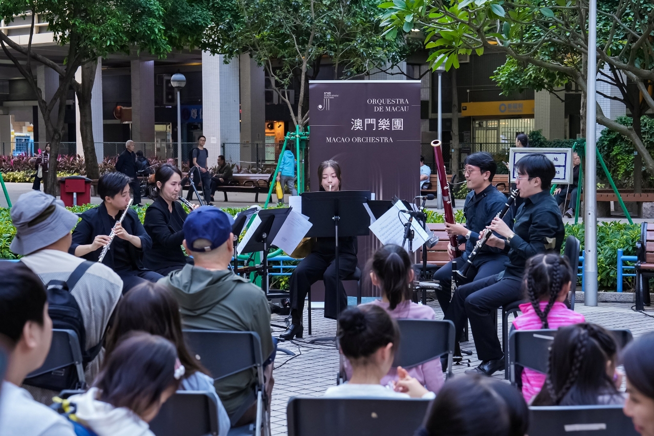 澳門樂團銅管五重奏與木管五重奏分別在黑沙環中街臨時休憩區、蘭花前地休憩區、氹仔花城公園及石排灣社區綜合大樓天台花園合共4個社區,演奏《香榭麗舍大道》、選自《西城故事》的〈美國〉、《塞維利亞理髮師》序曲、《美麗姑娘》、《阿里山的姑娘》等多首耳熟能詳的經典曲目,深受觀眾喜愛。音樂會期間更與觀眾互動,拉近音樂與市民的距離。樂團弦樂樂師們則組成多隊弦樂四重奏,在世遺景點之一盧家大屋上演4場音樂會,分別演繹拉威爾、聖桑、孟德爾遜,以及史麥塔納的弦樂作品,音樂與世遺建築融為一體,為旅客帶來獨特的視聽享受。