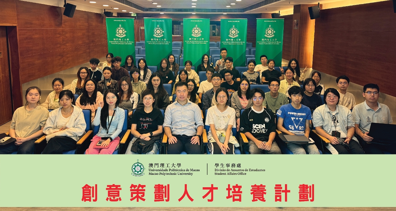 為啟發青年學生的創新思維,提升投身創意產業的競爭力,並促進全人發展,澳門理工大學學生事務處推出“創意策劃人才培養計劃”,為學生打造一系列實務工作坊,涵蓋活動策劃、圖文製作,以及攝錄剪接等範疇,系統化地引導學生從理論學習走向操作應用,將創意思維轉化為實務技能,全方位強化學生的創意實踐能力,培育符合社會需求的應用型人才。