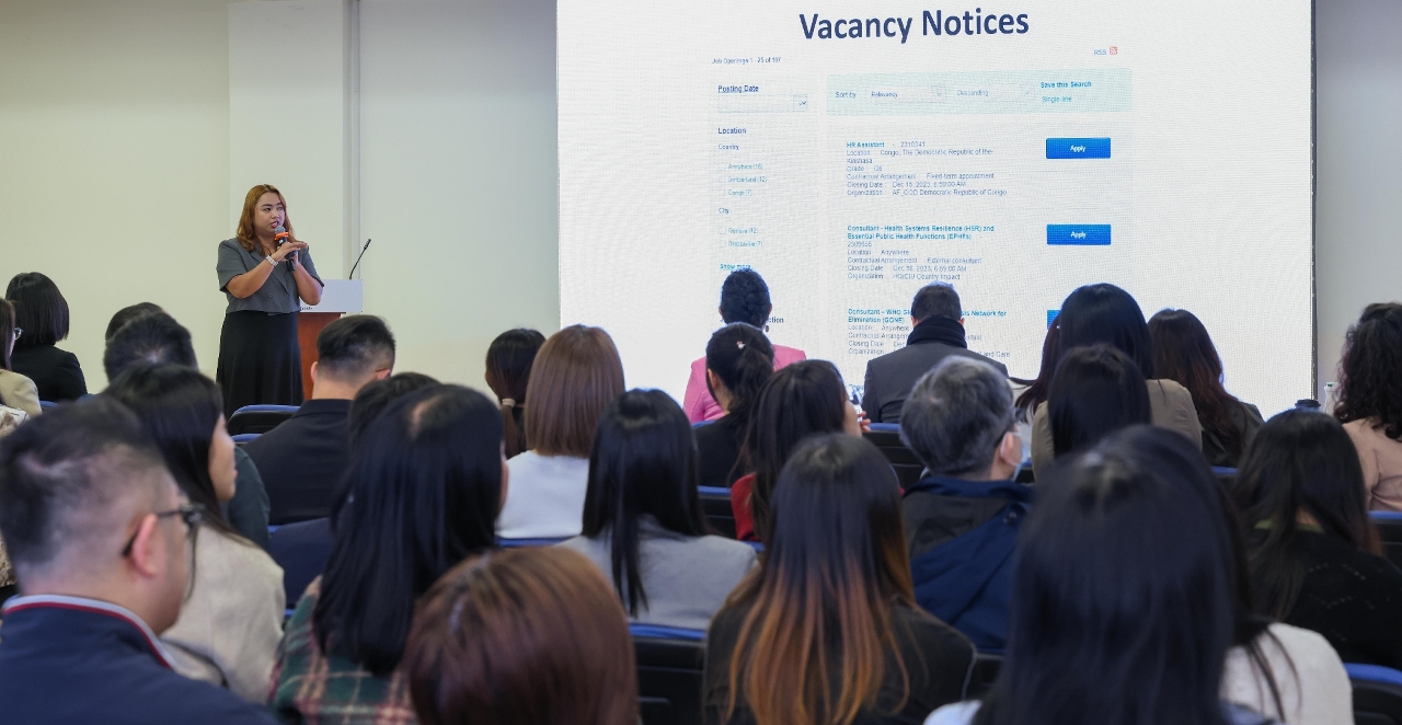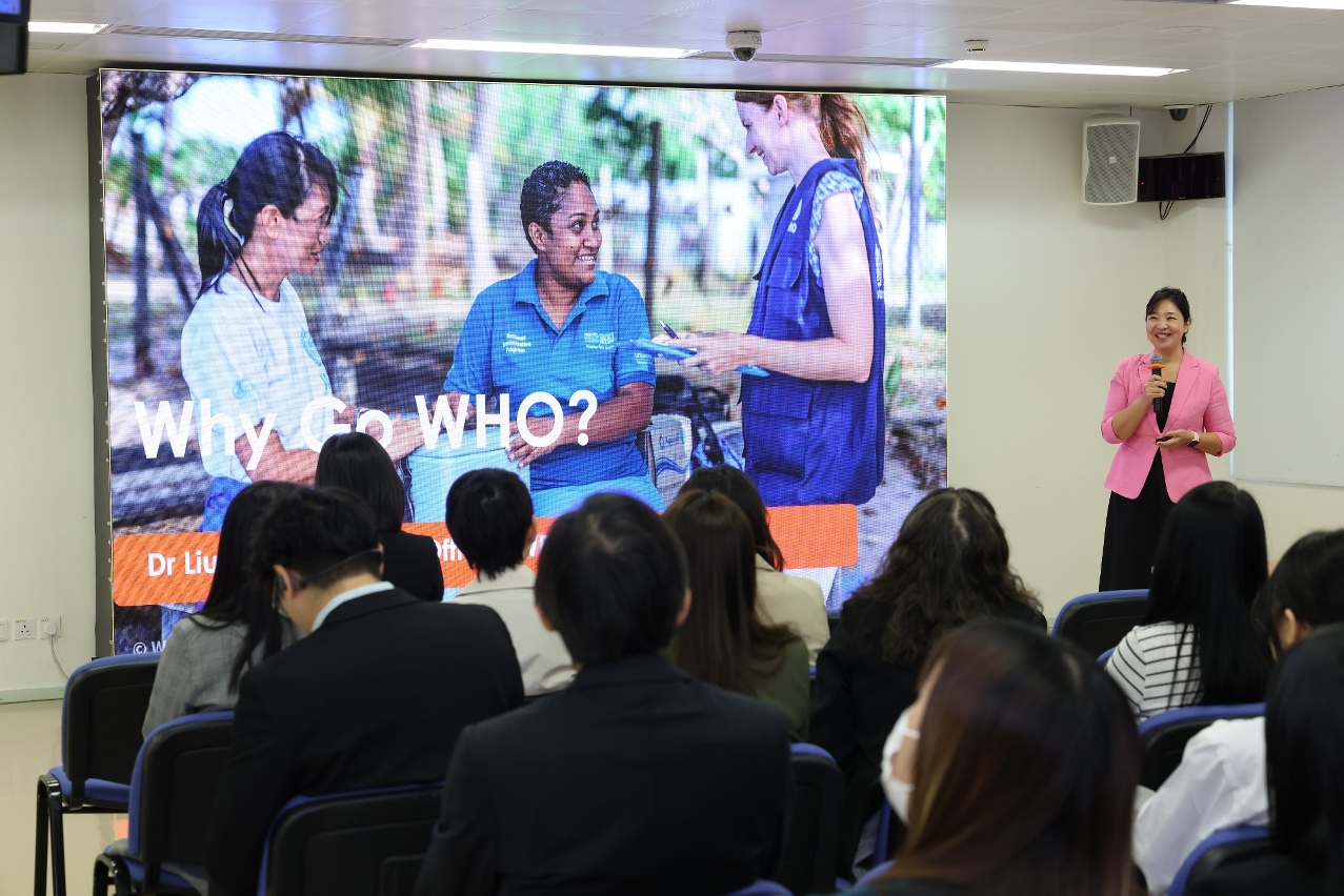 此外,宣講會還設有小型專場,個別學員透過模擬面試的形式,與世衛西太平洋區辦公室代表進行深入互動及面對面交流,使學員對世衛組織的招聘標準、面試流程和考核要點有了更具體的認識。