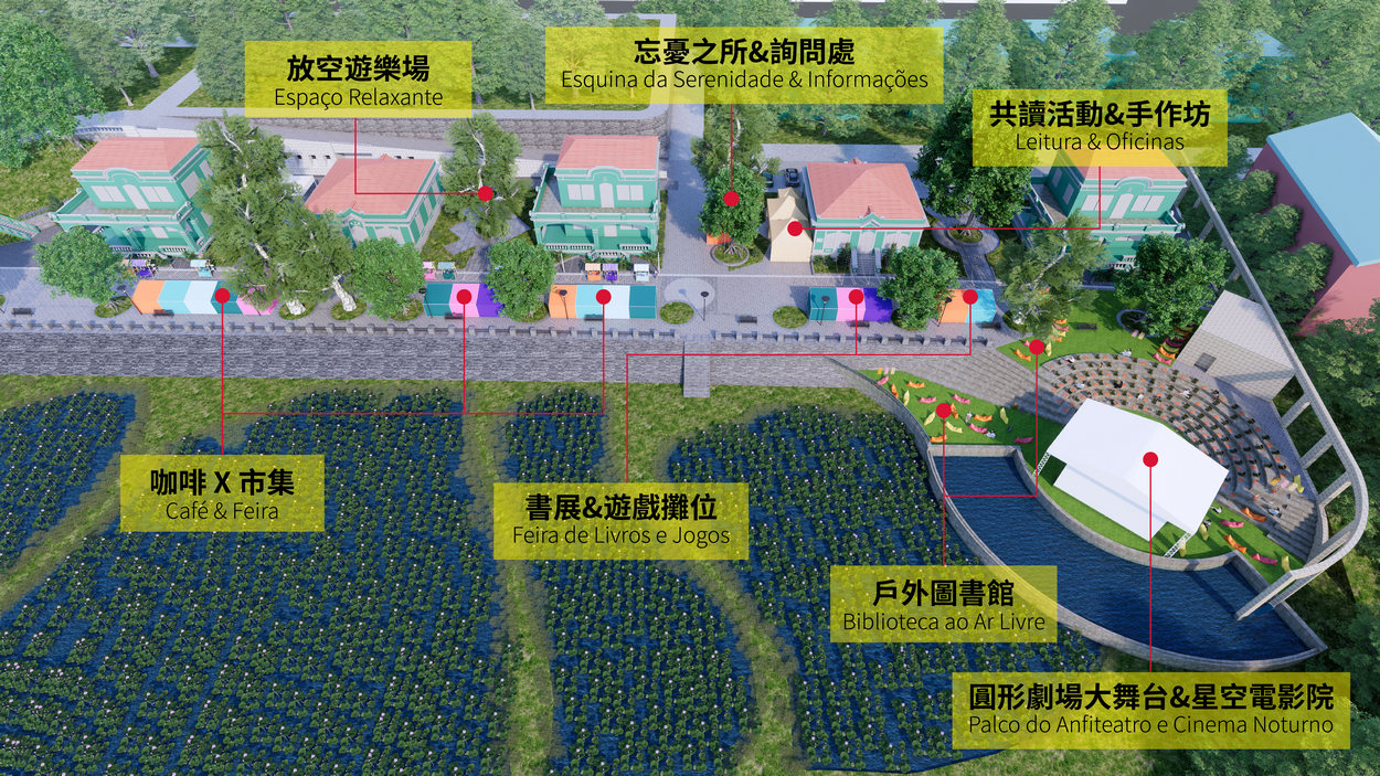 戶外圖書館、藝文書展、咖啡及文創市集、遊戲攤位、放空遊樂場、忘憂之所 |