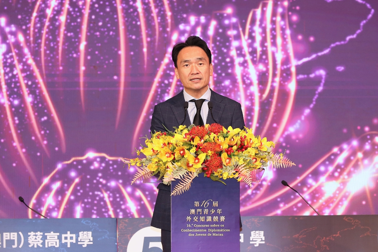 外交部發言人、外交部新聞司副司長郭嘉昆在視頻致辭中表示,澳門青少年外交知識競賽已連續舉辦了16屆,成為了一項品牌活動。習近平主席視察澳門期間強調青年是澳門的希望和未來,是建設澳門和國家的有生力量。澳門青年要心繫澳門,心繫國家,展現志存高遠腳踏實地的良好風貌。當今世界進入百年未有之大變局,十五五規劃建議擘畫了未來五年國家經濟社會發展宏偉藍圖。希望澳門青年珍惜時代機遇,樹立遠大志向,當好“一國兩制”事業的建設者和接班人,為澳門更好融入祖國發展貢獻青春和力量。