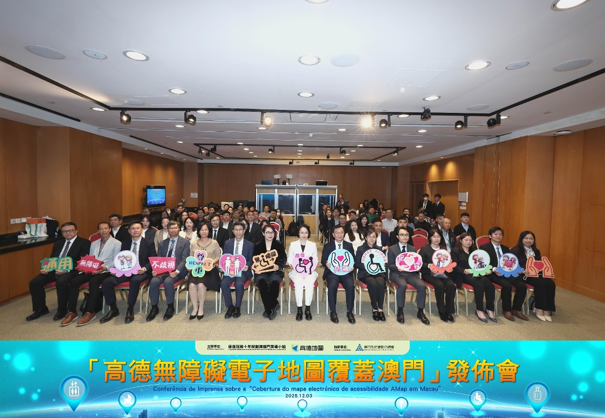 康復服務十年規劃跨部門策導小組於12月3日在科學館會議室舉行「高德無障礙電子地圖覆蓋澳門」發佈會。