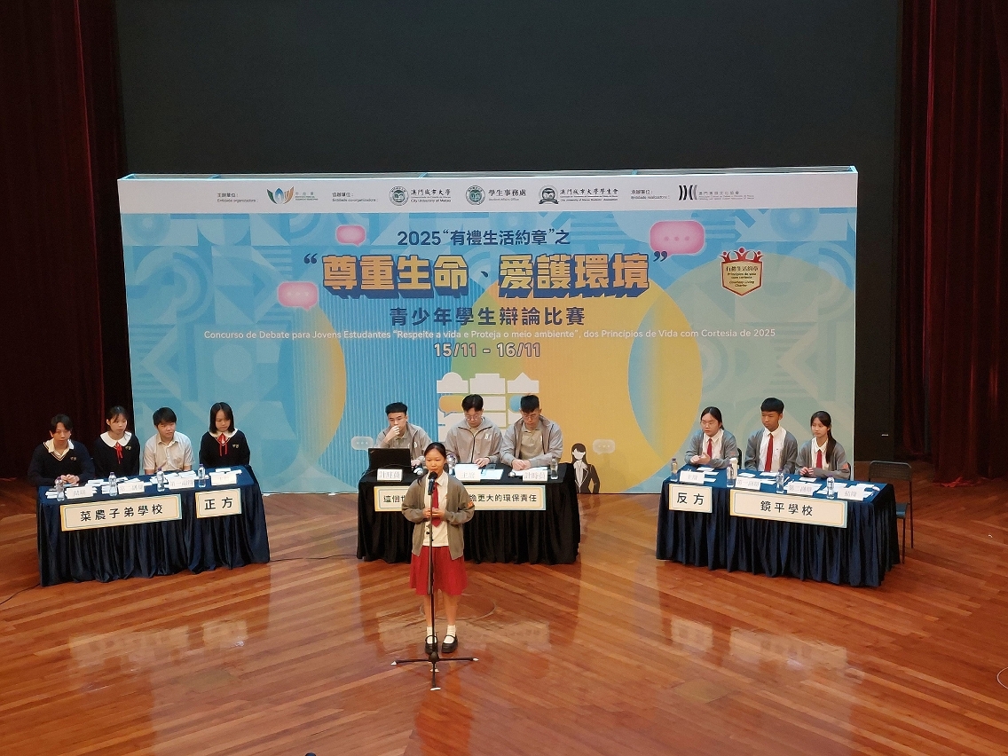 “尊重生命、愛護環境”青少年學生辯論比賽’,由市政署主辦、澳門城市大學學生會協辦、澳門演辯文化協會承辦,來自不同大專院校及中學組成了十五支參賽隊伍,經過激烈的初賽與決賽,角逐廣東話少年組、廣東話青年組及普通話組的各個獎項,兩日比賽逾五百人次參與。透過比賽提升了學生對社會事務的興趣,並有助鍛練邏輯思維、語言表達與團隊合作等能力。