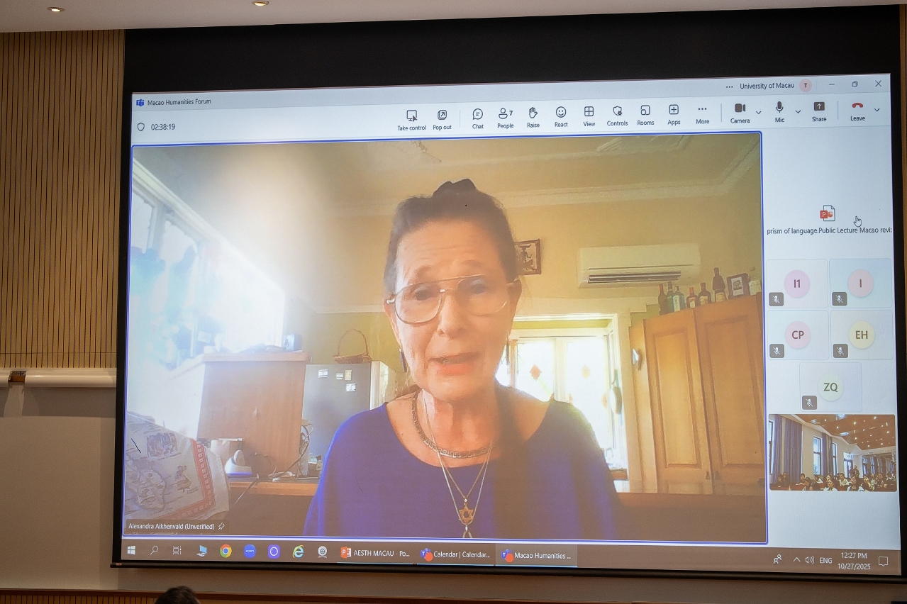 澳門大學人文學院舉辦“鏡海人文論壇”,由澳大利亞桂冠學者、中央昆士蘭大學資深研究教授Alexandra Y. Aikhenvald以“語言萬花筒:語法性別與量詞如何折射世界”為題發表演講,吸引眾多師生參與。