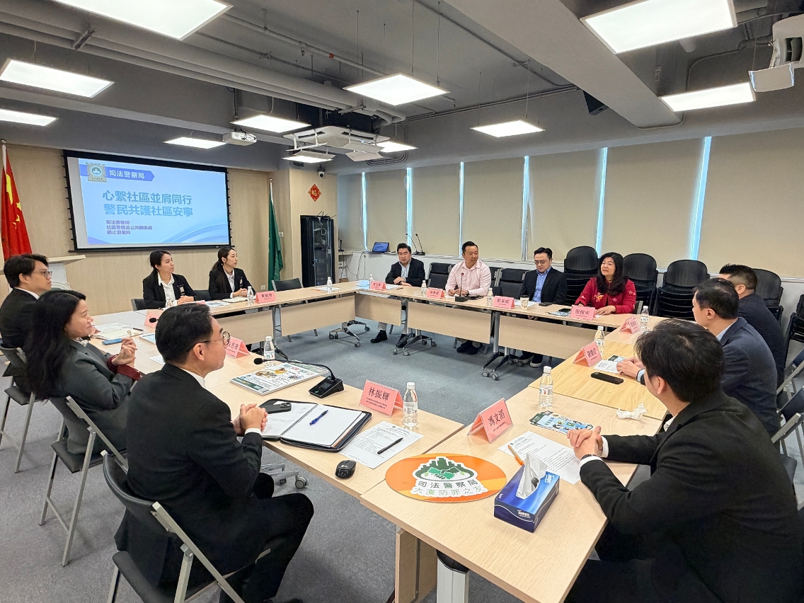 司警局人員向各團體介紹本局最新的執法動態及社區警務工作。局方期望與各團體建立常態化溝通機制,以便及時傳遞與業界相關的最新罪案趨勢、警情通告及防罪資訊,並借助團體的業內網絡,協助迅速傳播防罪滅罪訊息。同時,團體亦可透過該機制即時向局方通報可能涉及的罪案情況。