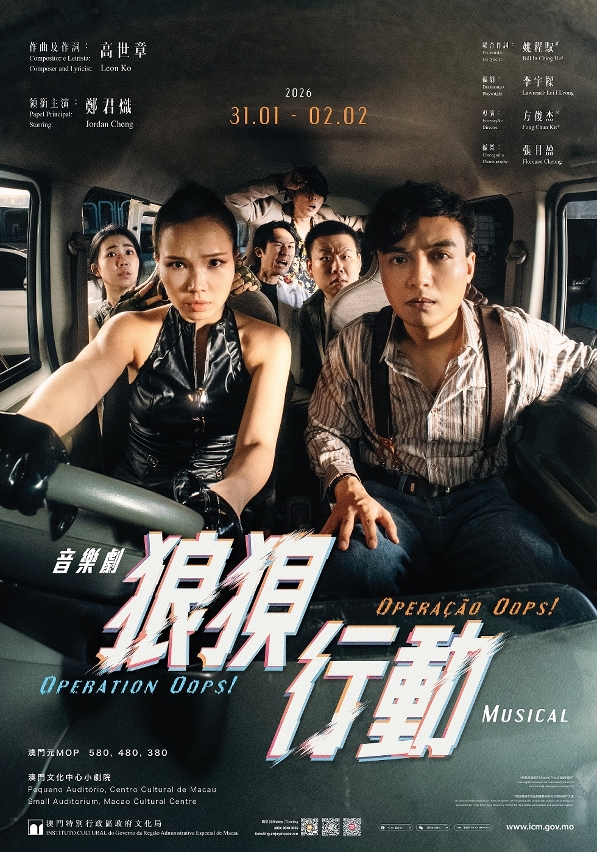 文化局將於2026年1月31日至2月2日在澳門文化中心小劇院上演三場音樂劇《狼狽行動》,作品為《本地演出委約製作計劃2024-2026》入選作品之一,雲集星級創演團隊,帶來娛樂性與藝術性兼具的原創粵語音樂劇。節目門票將於12月14日上午10時起於“享澳門售票網”、大麥網及貓眼娛樂公開發售。