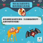 - 避免接觸野生動物:切勿靠近、餵飼和接觸禽鳥和野生動物(如蝙蝠或駱駝等),保持安全距離以預防禽流感等動物傳播疾病。