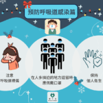 - 預防感染呼吸道疾病:在人多擠迫或空氣流通欠佳的地方應佩戴口罩,注意呼吸道禮儀,咳嗽或打噴嚏時應用紙巾或用手肘掩蓋口鼻,並將使用過的紙巾立即放入有蓋垃圾桶內,隨後徹底洗手並保持良好個人衛生。