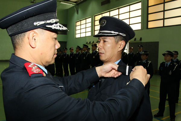 今天(一月九日)中午12時,在治安警察局特警隊大樓內舉行了副警長晉升儀式。儀式由治安警察局局長梁文昌警務總監、副局長黎錦權副警務總監及代副局長吳王碧瑤警務總長主持。出席儀式的還有局內各部門的廳長及負責人,為同僚作出祝賀。晉升為普通職程副警長共有63人 (男性48人,女性15人),而音樂職程及機械職程副警長則各有1名男性副警長。 註:晉升人員名單見附表 查看圖庫