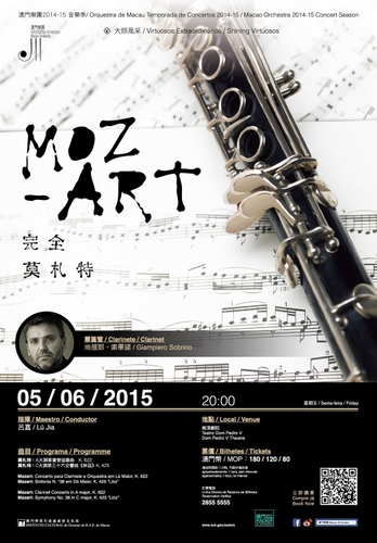 為慶祝澳門申遺成功十周年,文化局澳門樂團將於六月五日(星期五)晚上八時在崗頂劇院舉行《完全莫扎特》音樂會,由樂團音樂總監兼首席指揮呂嘉親自執棒,獻奏莫札特唯一一首A大調單簧管協奏曲及第三十六號交響曲。門票現於澳門售票網公開發售。 這次音樂會由意大利著名單簧管演奏家尚彼耶‧索畢諾(Giampiero Sobrino)擔任獨奏,藉其專業演奏水準,讓樂迷感受莫札特對單簧管的獨有喜愛。音樂會更同場獻演莫札特另一部值得一再欣賞的精緻之作第三十六交響曲《林茲》。一個與偉大作曲家進行音樂對話初夏之夜,樂迷絕不能錯過。維也納古典樂派代表人物莫扎特曾為多種樂器創作協奏曲,其中包括二十七首鋼琴協奏曲、五首小提琴協奏曲外,更在其生命最後一年創作了《A大調單簧管協奏曲》,此曲突出作曲家溫暖甘美的音樂特質,樂曲更强調單簧管在其高、中、低音域的音色表現力,無疑是其最偉大傑作之一。 澳門樂團《完全莫札特》音樂會票價一百八十、一百二十及八十元,設多項購票優惠,購票熱線二八五五五五五五。詳情及節目查詢可瀏覽澳門樂團網頁www.icm.gov.mo/om。