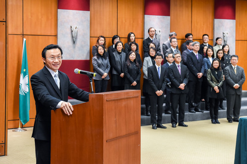 社會工作局在今天(一月十八日)舉行就職儀式,社會文化司譚俊榮司長主持監誓,他勉勵新任領導及主管,要秉承廉潔奉公、以民為本、迎難而上的精神,為建設和落實特區政府的民生長效機制,不斷優化社會服務的素質,構建和諧、幸福的社會。 根據第28/2015號行政法規制訂《社會工作局的組織及運作》,並將社會重返廳的併入,重組後社會工作局設有六廳十七處。是次就職儀式由社會文化司譚俊榮司長主持、社會文化司司長辦公室葉炳權主任及社會工作局黃艷梅局長主持,見證24名新任領導及主管履任新職位。(詳見附件名單) 社會工作局黃艷梅局長表示:在新架構中,社會工作局對各單位的職能作出調整,期望全體工作人員秉持 “助民解困,共建新生”的理念,繼續與民間機構合作,共同提升本澳社會工作人員的專業水平,促進社會服務的發展,為市民提供優質和高效的服務,增進民生福祉。新任社會工作局韓衛副局長及區志強副局長在致辭時表示:感謝特區政府的信任,承諾會在社會文化司和社會工作局長的領導下,會盡忠職守,貫徹落實特區政府的施政理念,建立幸福家園,營造和諧共融的社區。 出席就職儀式有社會文化司司長辦公室葉炳權主任、顧問何麗鑽、林曉白、社會文化司屬下各部門領導及主管、以及社會工作局同事。