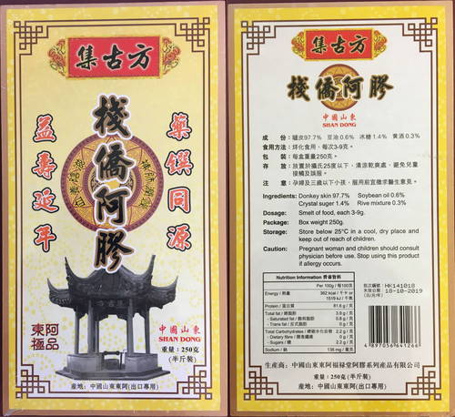 衛生局對本澳市場上的中藥材作例行抽檢,發現4個批次的中藥材“阿膠”不符合國家標準規定(詳見附表),且摻有牛皮源成分,衛生局已對該等問題產品封存。 “阿膠”是由驢皮煎煮濃縮製成的產品,屬於澳門特區所用中藥材表第II部份的普通中藥材,功效為補血滋陰、潤燥、止血。根據國家相關標準的規定,“阿膠”不能摻有驢皮以外的動物成分,為保障公眾健康,衛生局已要求中藥房及有關的藥物出入口商回收上述問題批次的“阿膠”,並呼籲巿民停止使用該等批次的產品。此外,衛生局繼續對市面上的“阿膠”進行抽檢。 目前,衛生局除定期對本澳市場上的藥品作出抽檢外,亦設有藥物質量及不良反應通報系統,醫生、中醫生/師、藥劑師及其他衛生專業人士可透過此系統向衛生局通報藥物質量問題及不良反應個案。市民如有任何疑問,可致電熱線66833329或於辦公時間致電85983427向衛生局藥物事務廳查詢。