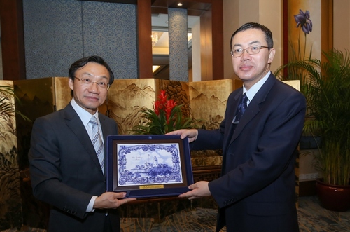 譚俊榮與深圳市副市長艾學峰參觀澳門創意館