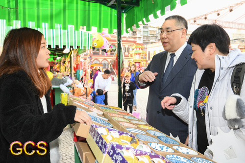 行政長官崔世安與年宵市場的檔主交談,了解經營情況。