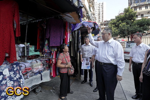 行政長官崔世安到紅街市附近視察,聽取負責部門匯報該區的民防準備和疏散撤離計劃部署。