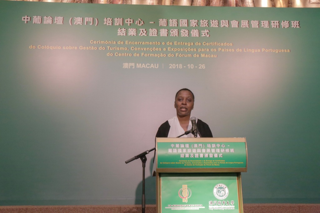 由中葡論壇(澳門)培訓中心主辦、澳門城市大學承辦的“葡語國家旅遊會展研修班”於10月26日假澳門美高梅宴會廳舉行結業典禮暨證書頒發儀式。
