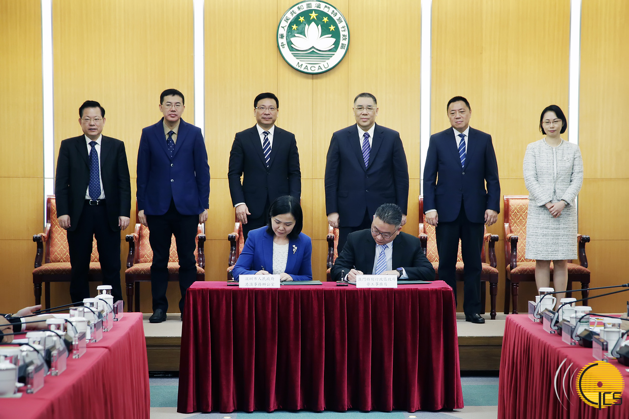 行政長官崔世安與深圳市市長陳如桂在2019年深澳合作會議上親切握手