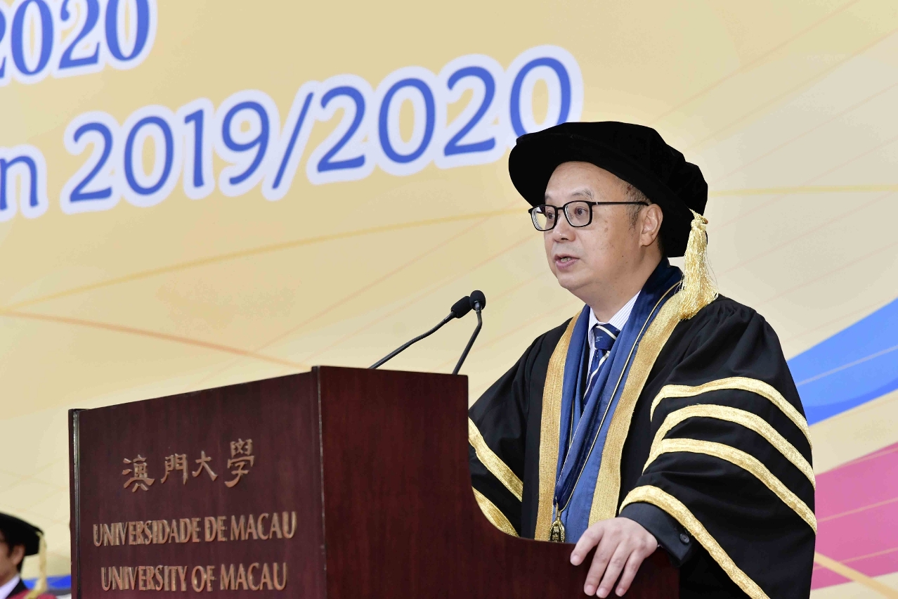 開學禮在管樂團的樂韻聲中掀開序幕。宋永華表示,適逢今年中華人民共和國成立70周年、澳門回歸祖國20周年,今年開學禮別具意義。隨著國際高等教育的演變,“創新驅動型發展"已成為全球共識,大學使命亦有所改變,需要“創新”,從教育中傳播知識、從研究中創造知識、從服務中轉化知識。他表示,因應國際社會對未來人才的要求,澳大的本科教育也作出創新,增加了數碼教育、公民參與和社區經驗、創業機會、領導才能培訓等,以增強學生的國際競爭力。