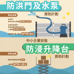 颱風雨季已至,中小企業特別是位處低窪地區的商戶,應及早做好防洪防浸的準備工作及預防措施,有備無患,以免造成貨物及設備損失。經濟局與生產力暨科技轉移中心自2018年合作推出“中小企業安裝防浸升降台”及“中小企業安裝防洪門及水泵”資助計劃,兩項計劃將於本年6月30日截止,呼籲有需要的商戶及早提交申請。